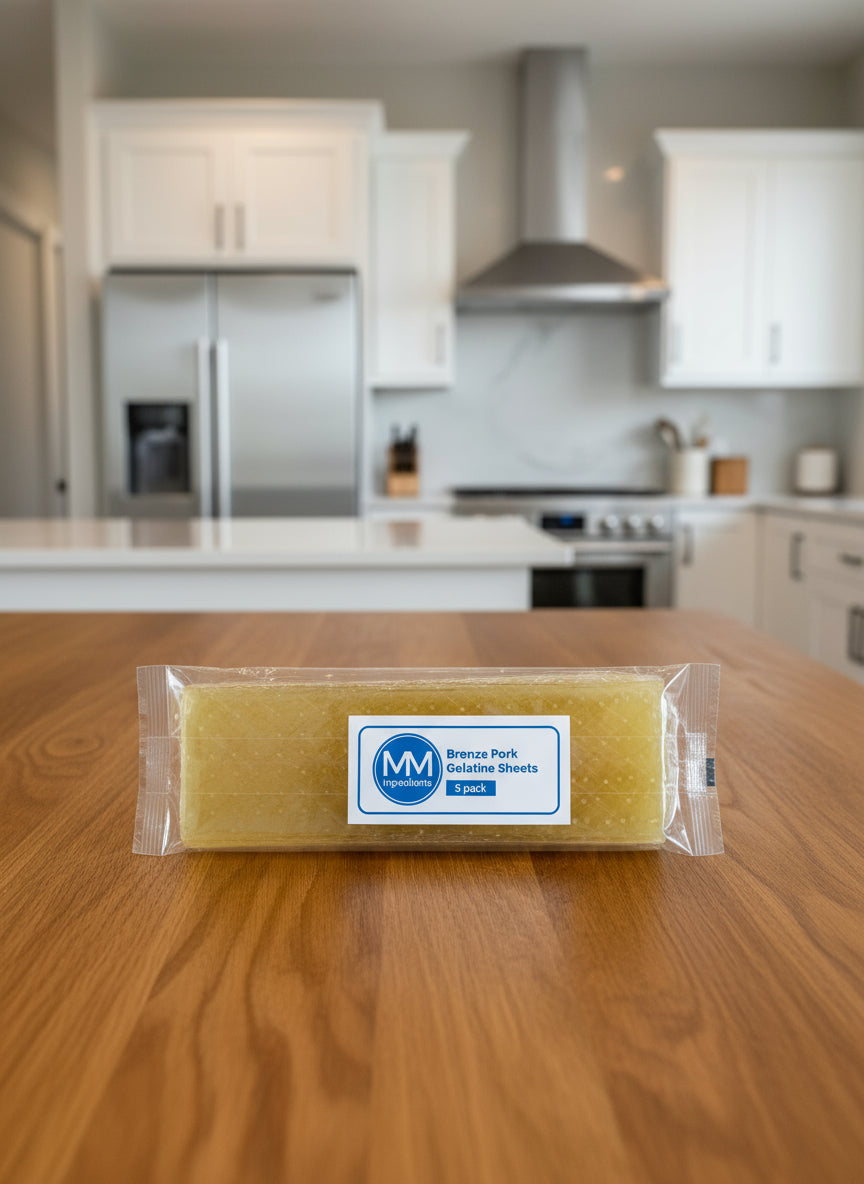 Leaf gelatine Pork Bronze 5 sheets can be used in many applications for both home chef as well as the professional chef. Great for making those delicious desserts, confectionary, and for using in pates and other meat dishes.