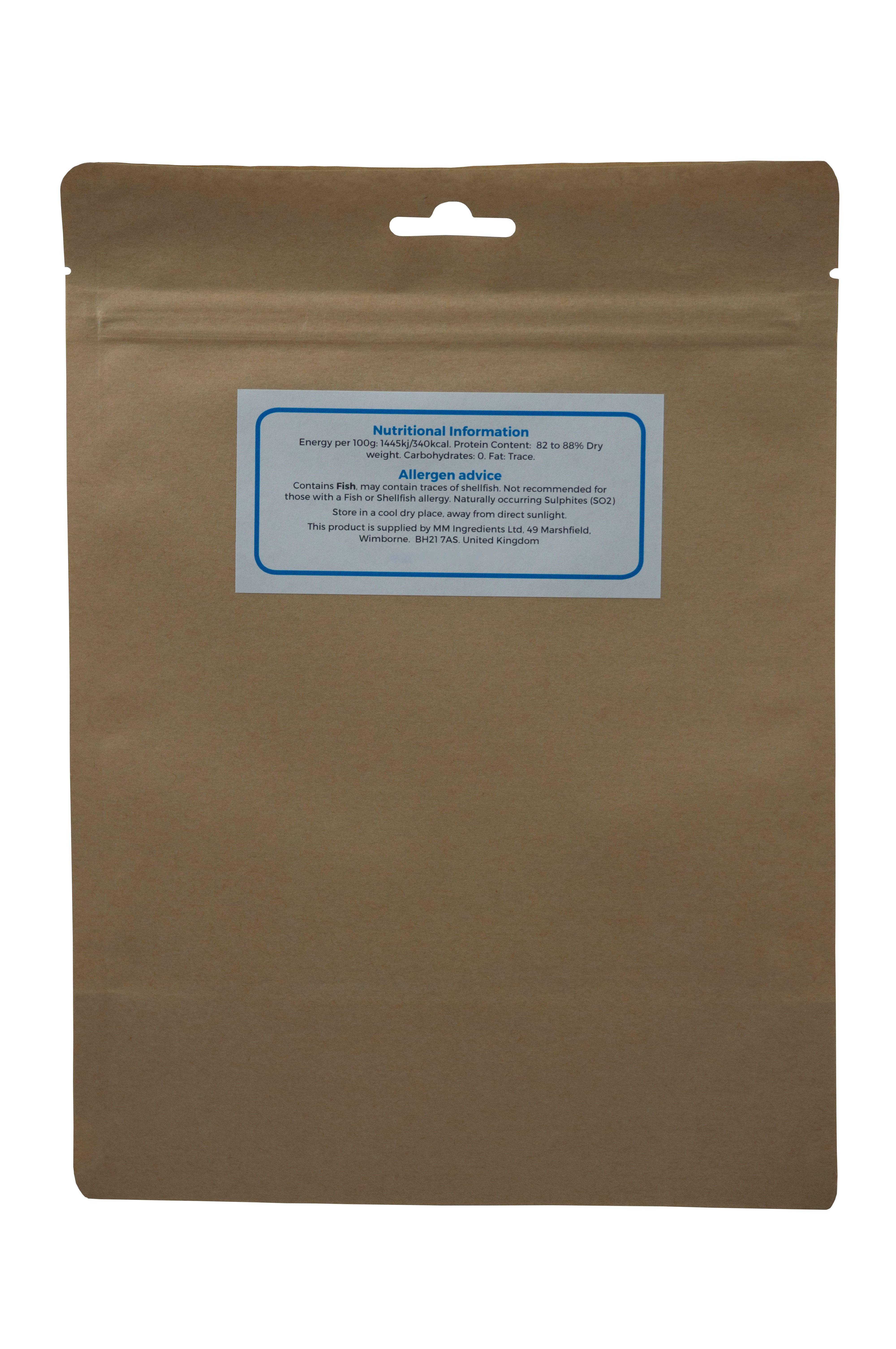 Our Fish Gelatine is produced from fish skins.